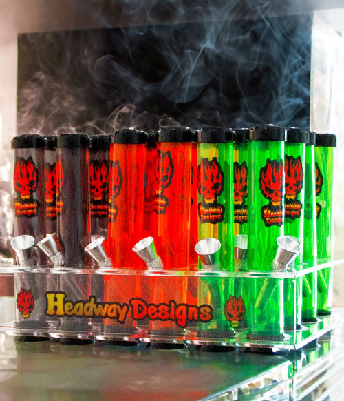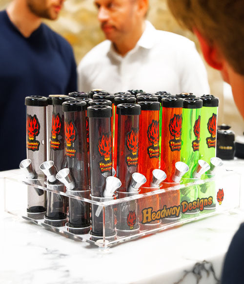 Headway Design Basic Display Kit 18pk are top-quality water pipes made completely from high-grade acrylic and incorporate stunning, eye-catching designs. Because it is made from acrylic, it is durable and can withstand daily use. This also makes it perfect for travel or in small group sessions. Headway Design is known for their larger-sized water pipes. They go from 3 feet to 4 feet and are even bigger than that! In addition to delivering intense inhales for a great overall performance, these pieces are user-friendly, easy maintenance, and quick to clean.