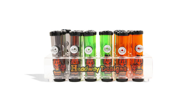 Headway Basic Display Kits are available in an 18 Assorted Color Acrylic Waterpipes. This includes 3 pcs each, 6, 8 and 10 inch Straight Water Pipes. It also has 3 pcs each of 8 and 12 inch Bubble Water Pipes.