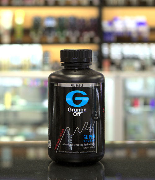 The Grunge Off Super Soaker Glass Cleaner is a 16oz formulated exclusively for glass. With no harmful additives or shaking necessary, this biodegradable mixture deodorizers and cleans away any grungy build-up. With an advanced cleaning formula, it not only clans but also sanitizes glass too. Grunge Off Super Soaker Glass Cleaner is a non-toxic naturally made cleaner used for glass products associated with the use of tobacco and other herbal blends.